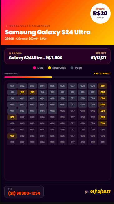 A única plataforma que permite você transformar sua campanha num site profissional, com identidade própria, contadores de escassez e notificações em tempo real. Teste abaixo!