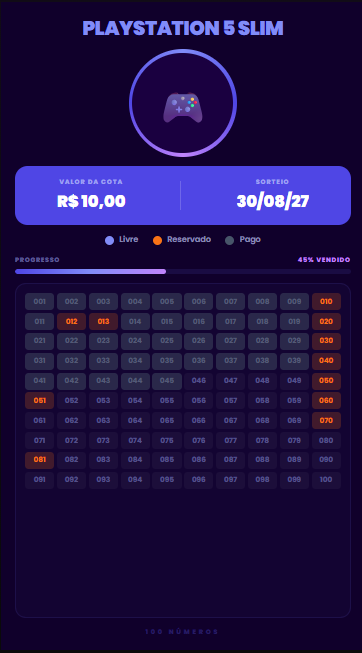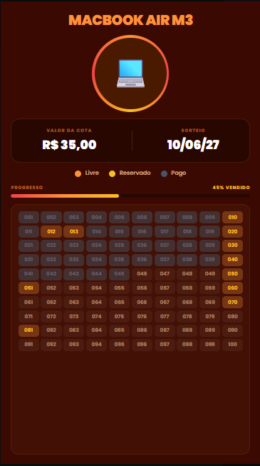 Grade interativa onde o apoiador vê na hora o que está livre ou ocupado.