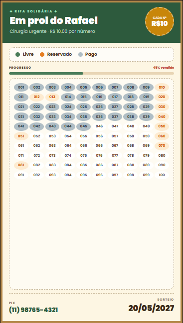 - Os valores pagos pelos apoiadores são enviados diretamente para a conta do organizador via PIX.